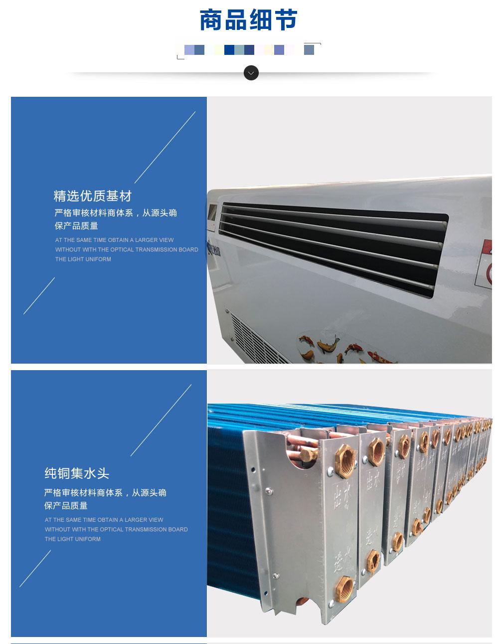 1.機組選用主要是控制參數的額定風量、出口靜壓、輸入功率、額定供冷量、額定供熱量、噪聲、水阻等。